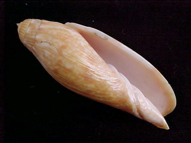 ....28551...(1)...Odontocymbiola saotomensis Calvo & Coltro, 1997....60 mm. F++. Beautiful, pastel orange specimen with just a hint of zig-zag pattern. Really, this one is a keeper!!...Brazil...$110 (1 available)
